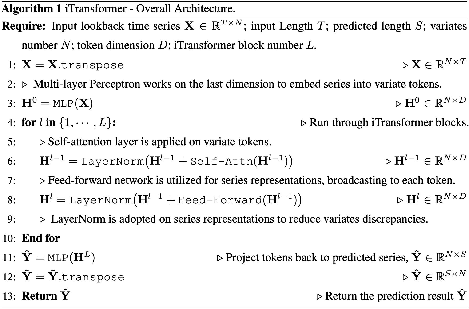 The following formal algorithm describes the iTransformer workflow:
